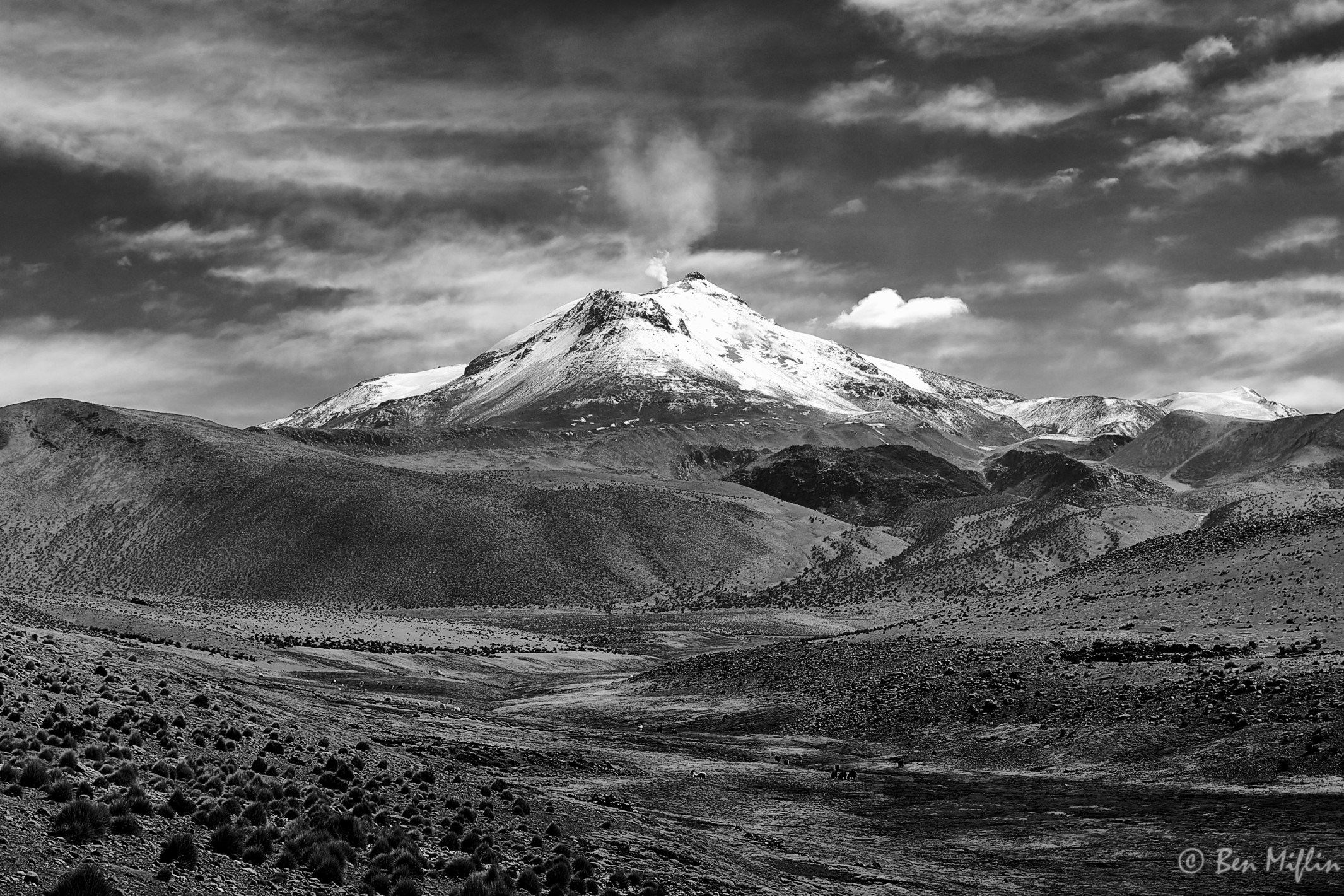 An active volcano on the Altiplano of Chile. Guallatiri comes from the aymara term for Andean goose and the volcano has an elevation of 6060m.