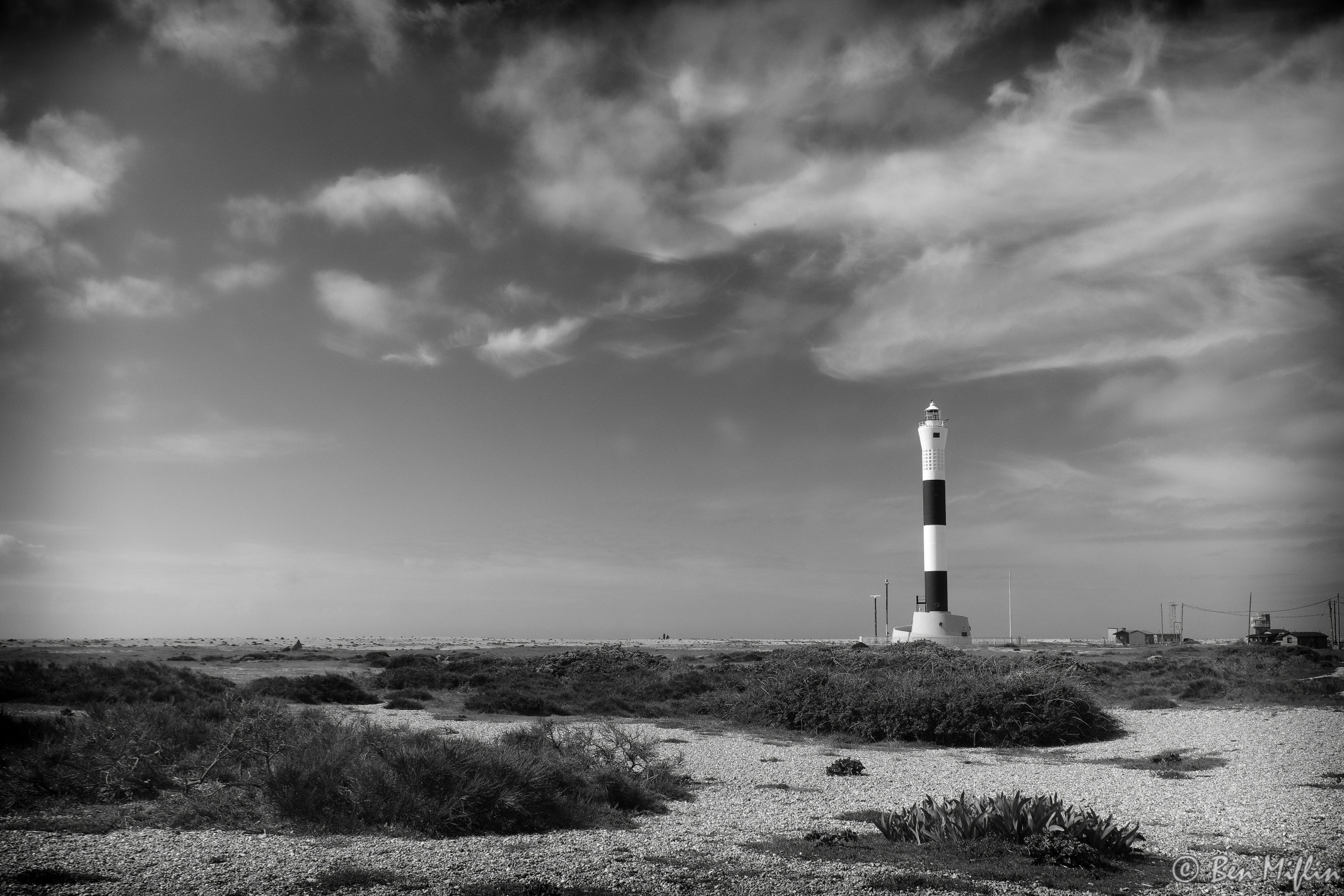 The modern Lighthouse at Dungeness, the fifth of a series of lighthouses built at Dungeness.