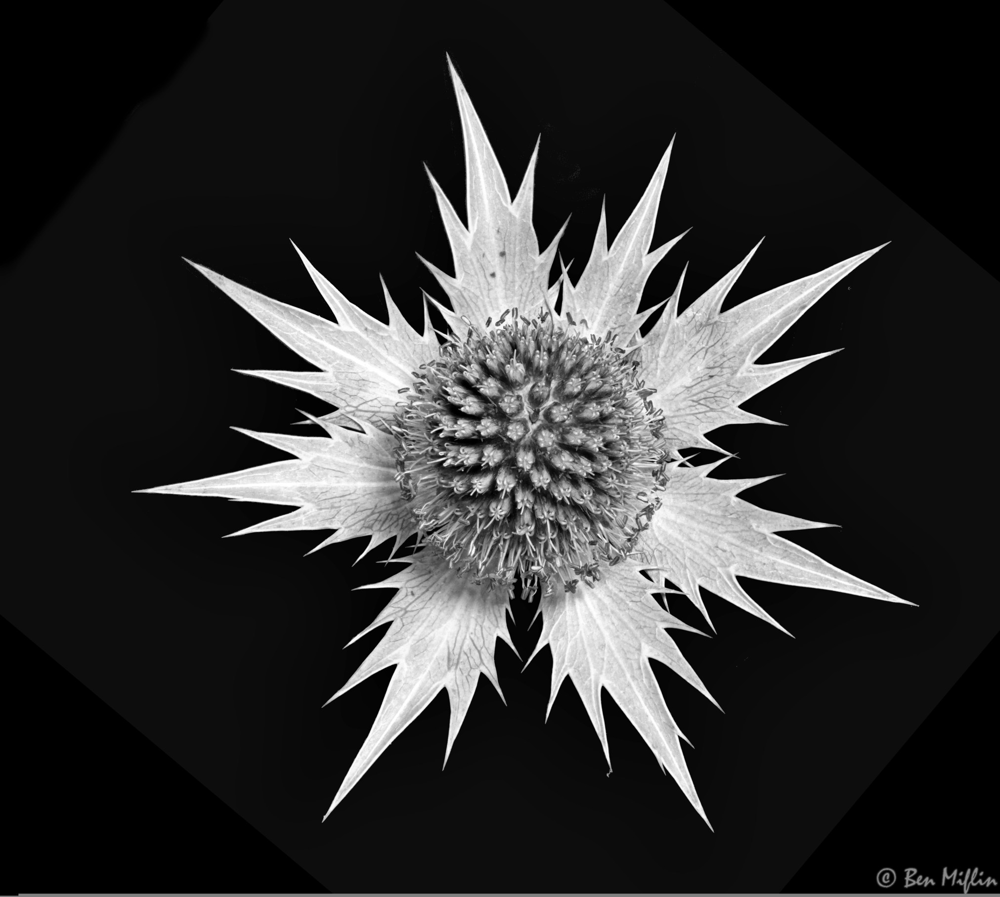 Eryngium giganteum or sea holly. One in a series of three showing that plants have their own protctive armory
