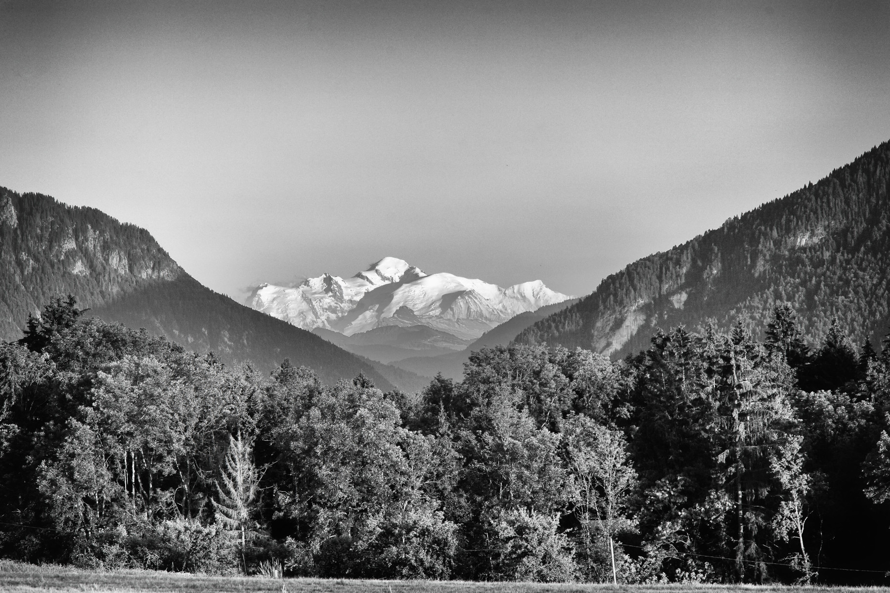 Mont Blanc as seen from Vinzier after a snowfall in July