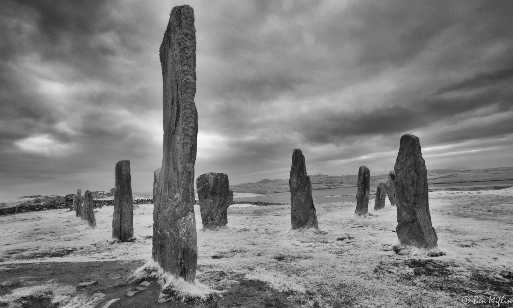 The major central stone is 4.8m above ground and estimated at 4.5 tonnes. It and the line of stone on its left are lying along the N/S meridian