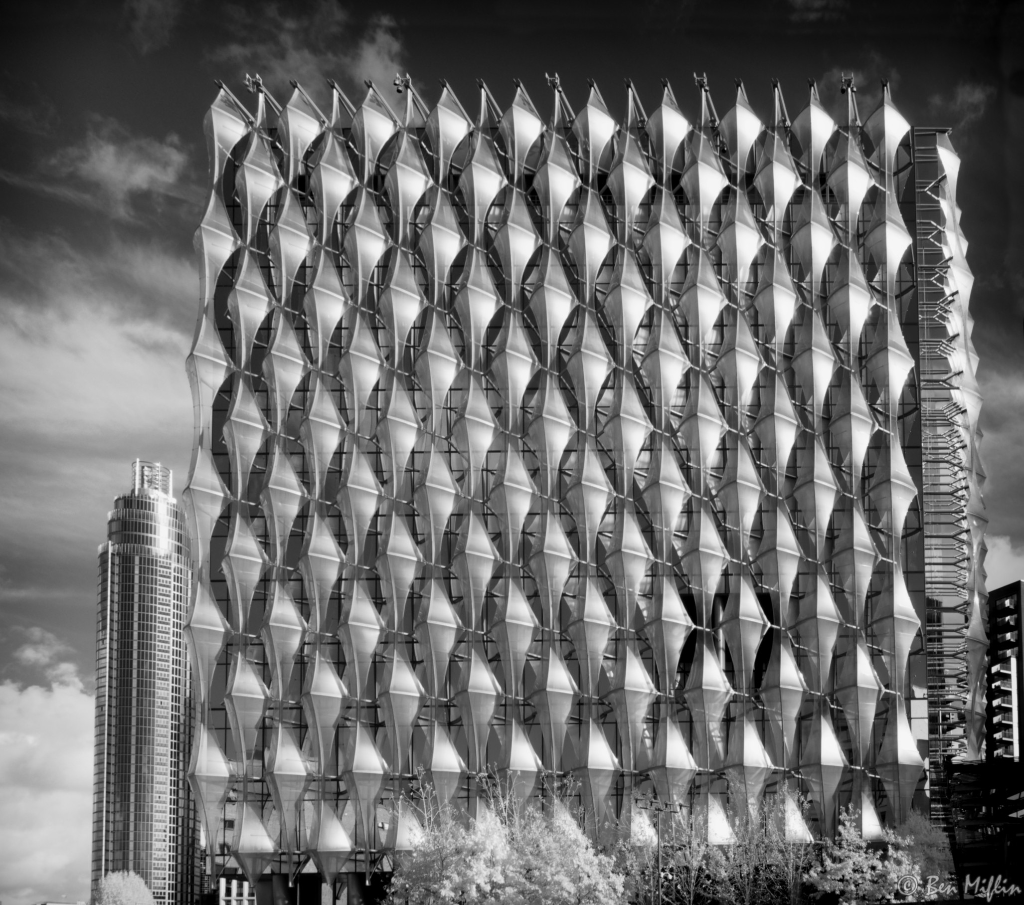 Modern (2018) US Embassy designed by James Timberlake. Is a very environmentally designed building and its outside 'sails' provide many interesting architectural patterns.
