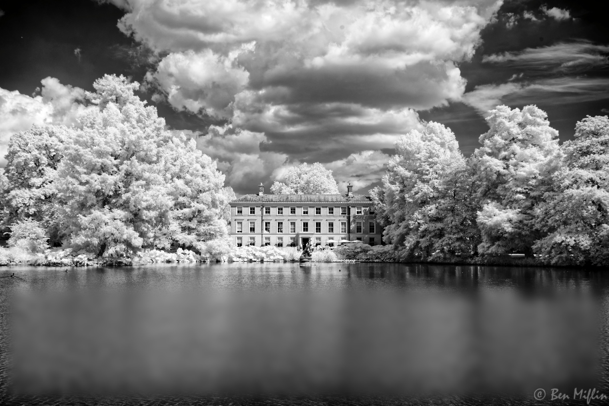 The Botanical Brasserie at Kew Gardens within the former museum facing the lake opposite the Palm House.