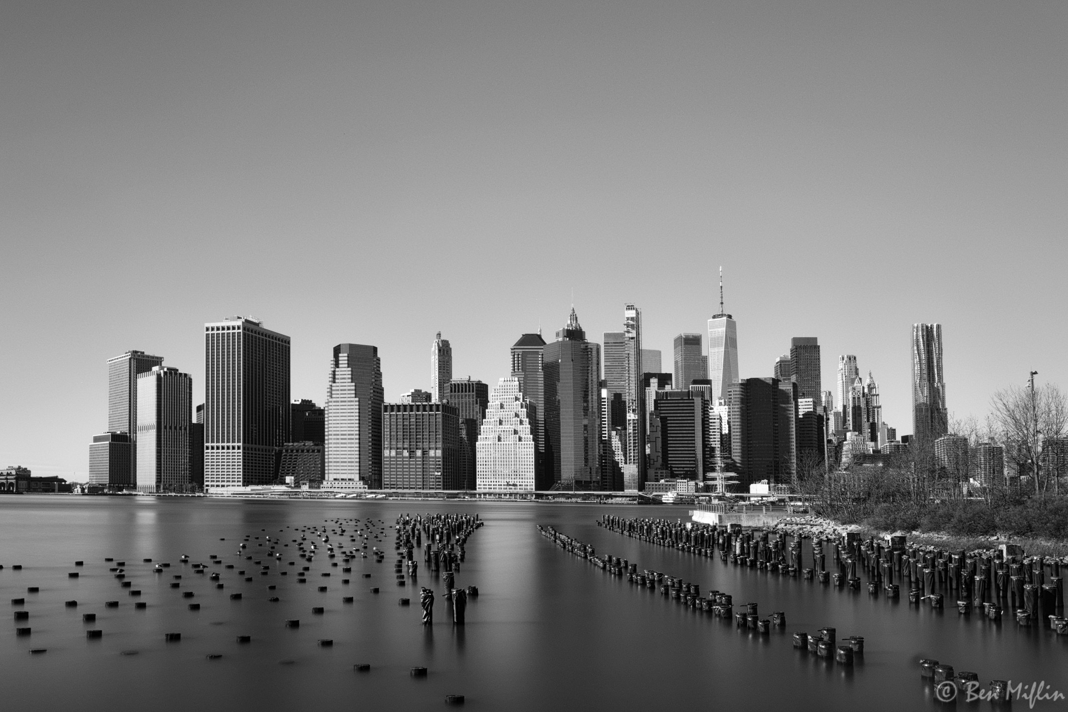 The Lower Manhattan skyline captured from Brooklyn Bridge Garden Pier 1