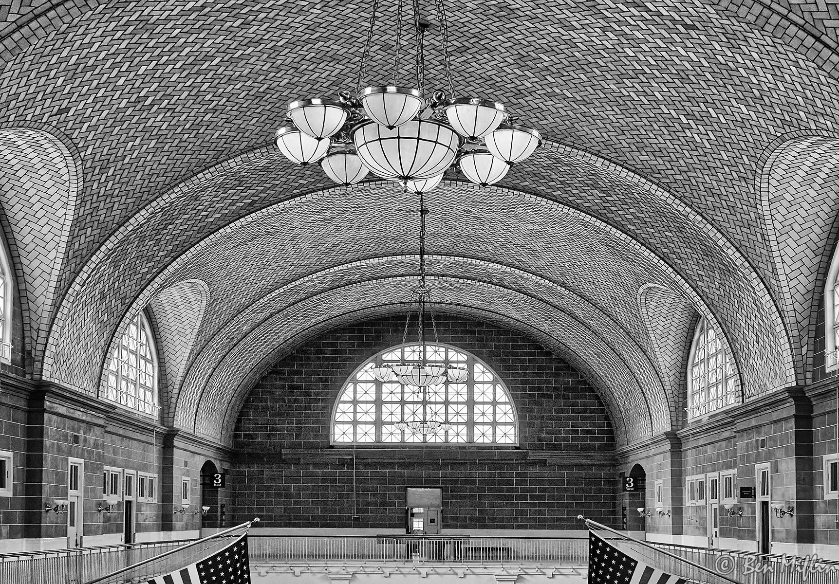 Ellis Island NYC. The processing of applications for immigration into the USA from 1900-1954 took place in this elegant Registry Room.