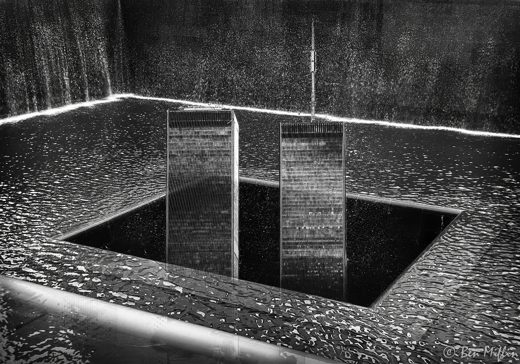 My memorial to 09/11 is a photo of the twin towers fused with one of the memorial water feature.