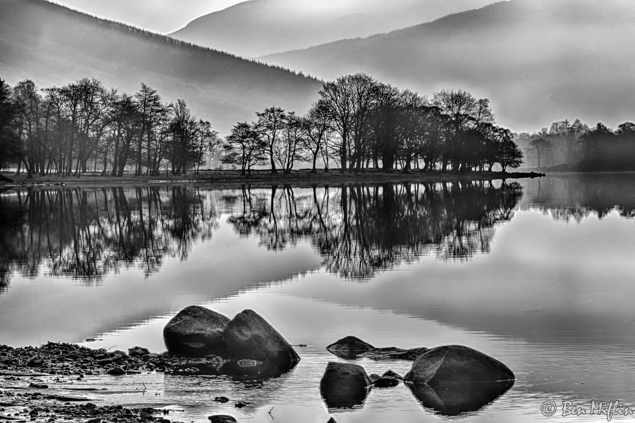 Morning Light Silhouetting Trees, Loch Voil, Balquhidder
