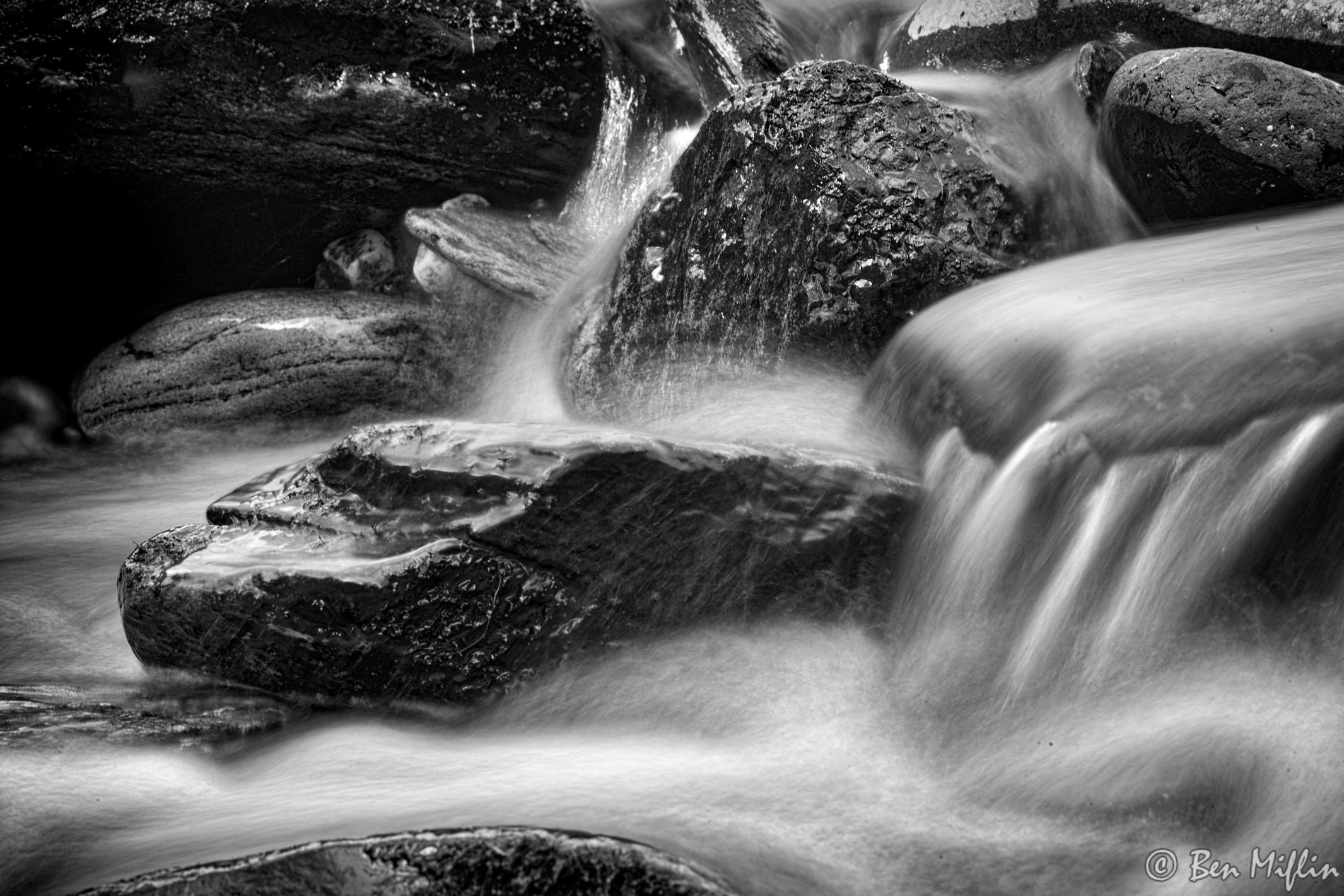 An attempt to capture the movement of water rushing down Gleann Crotha near Balquhidder