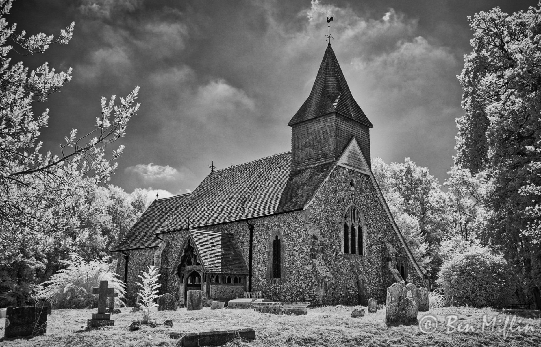Parish Curch, Selmeston. Unusually, the churchyard is circular, with complex ley lines centred on the font perhaps because it was built on a site used for pagan worship.