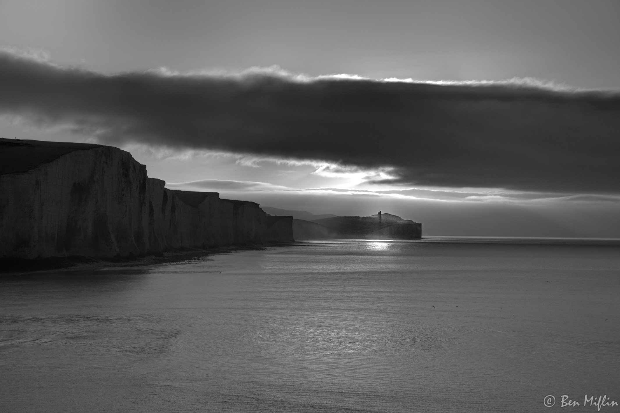 Seven Sisters and the sun rising over Belle Tout
